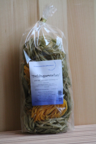 Hartweizengriess, Eier 33%, Spinatpulver 2%, Petersilie 0,7%, Curcuma